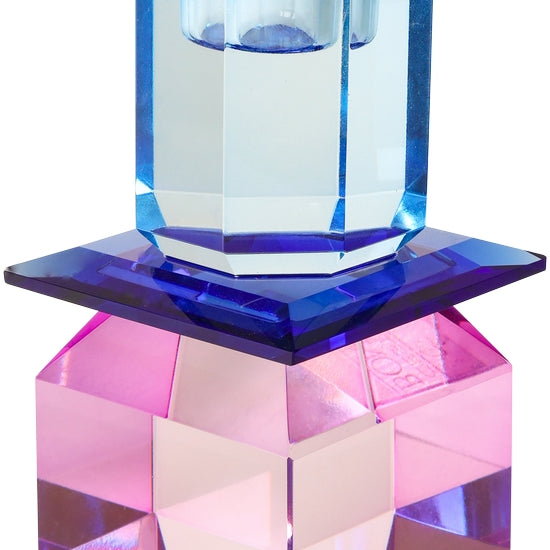 Tall Cubed Crystal Candle Holder, Violet/Light Pink/Butter
