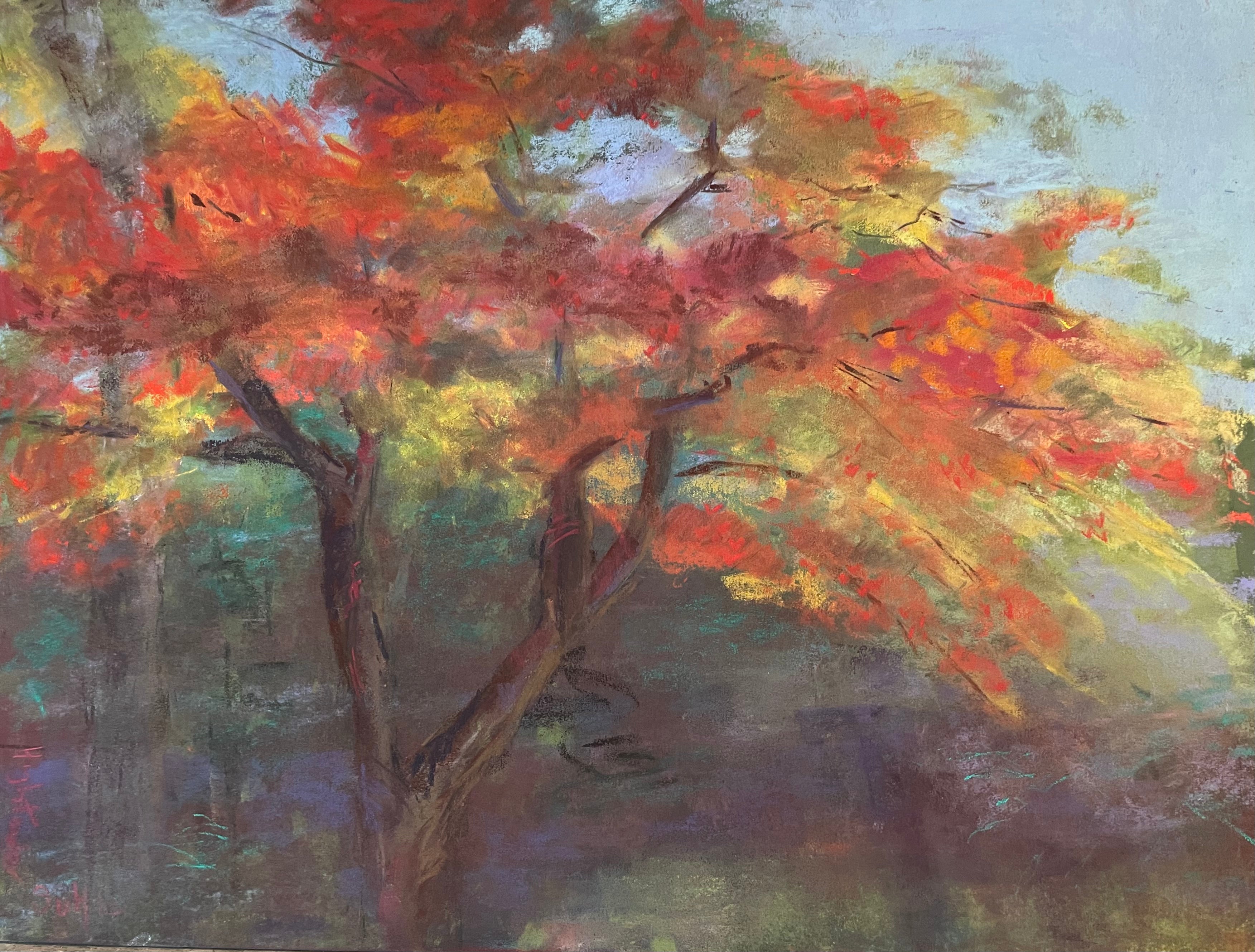Pastel on mounted paper with a watercolor underpainting, this started as a plain air piece and was finished in the artist's studio. A beautiful tree on Greenlee Drive in Austin that Alison looks forward to painting every year.