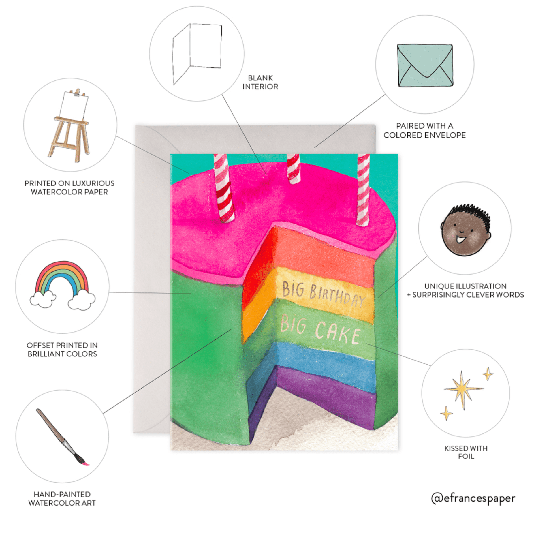 hee hee hee hee that guy wears a lot of hats... Each E. Frances card begins as an original hand painted watercolor illustration and is then printed on luxe, heavyweight paper in brilliant color. Made in the USA. 4.25 X 5.5 INCHES.