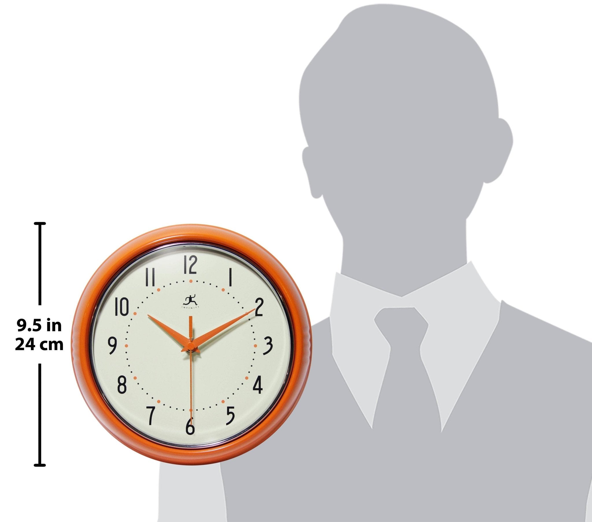 Retro Round Orange Indoor Wall Clock 9.5 Inch