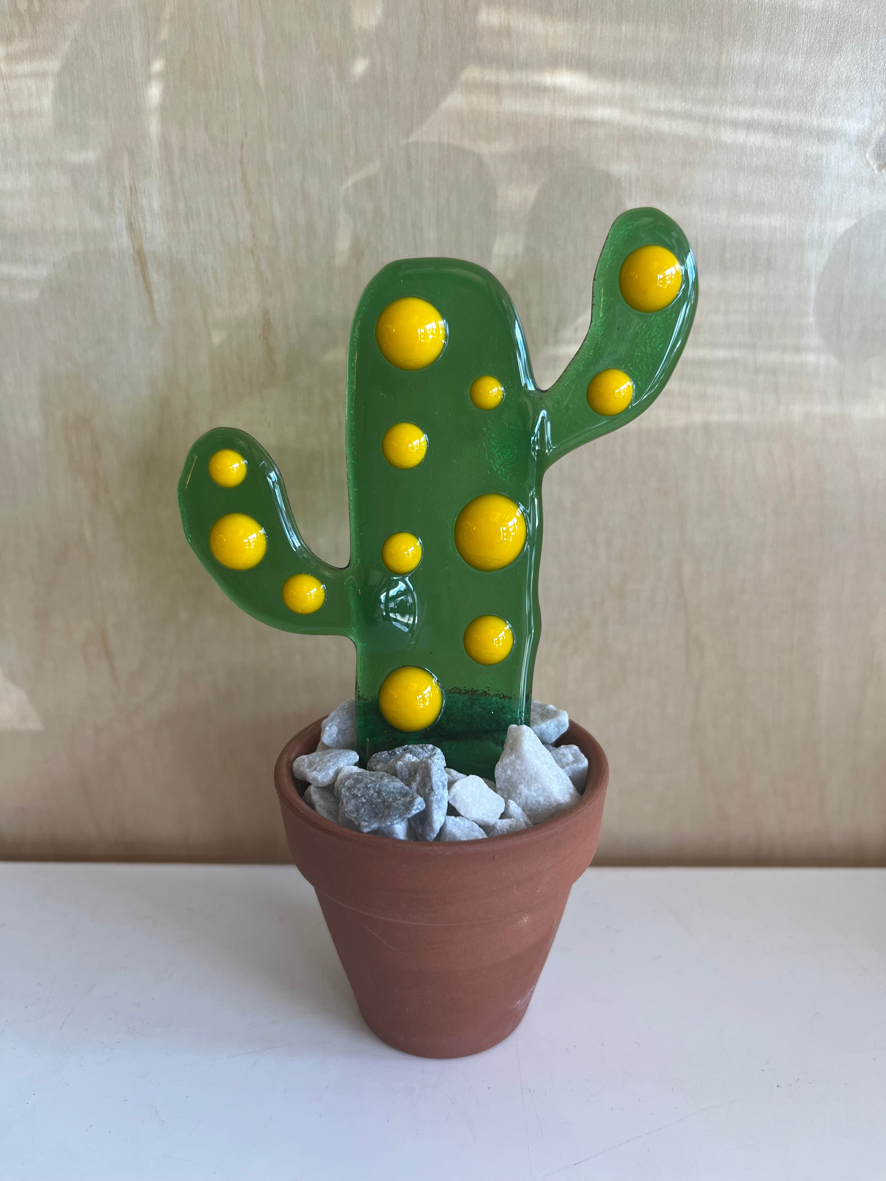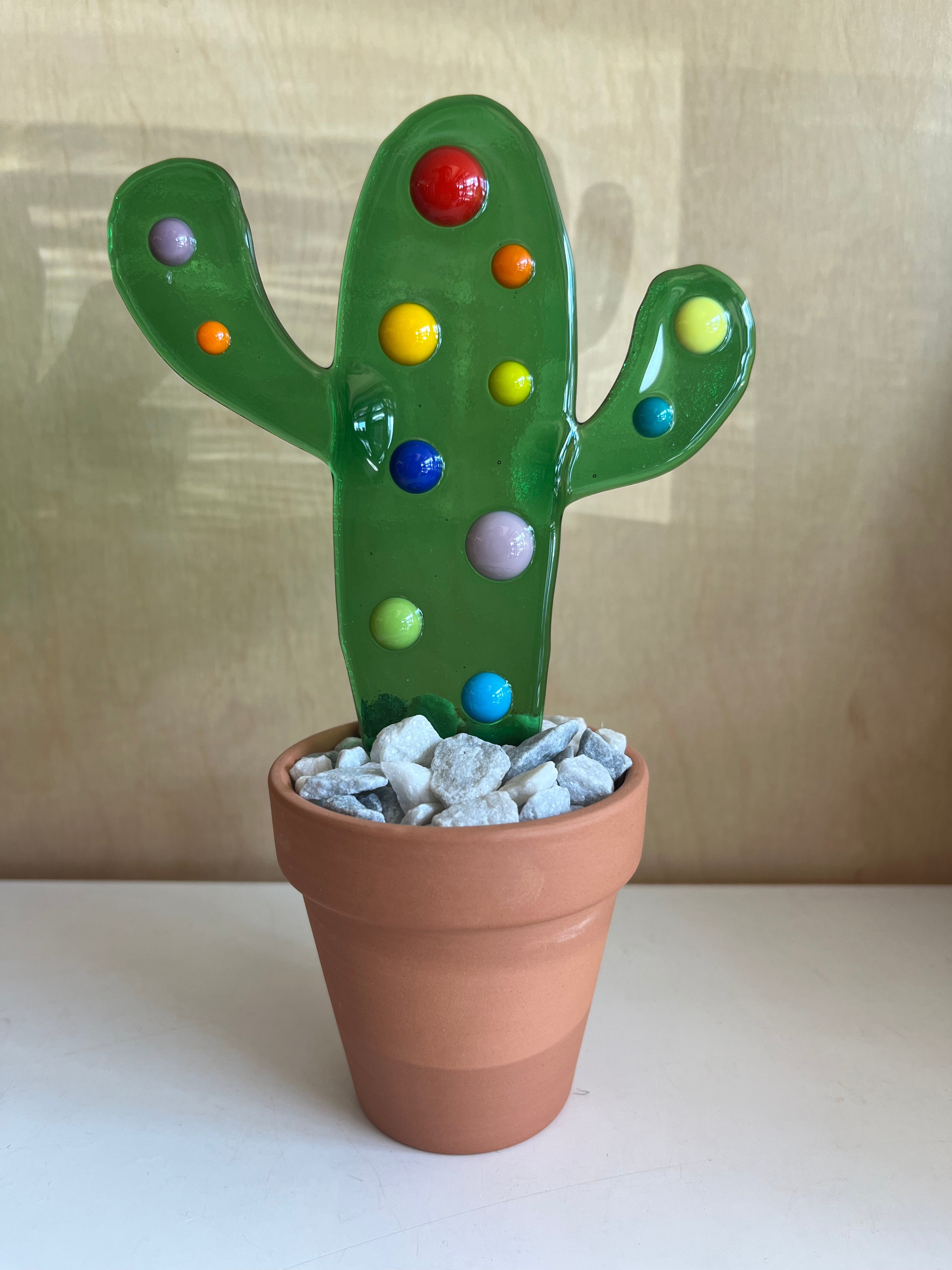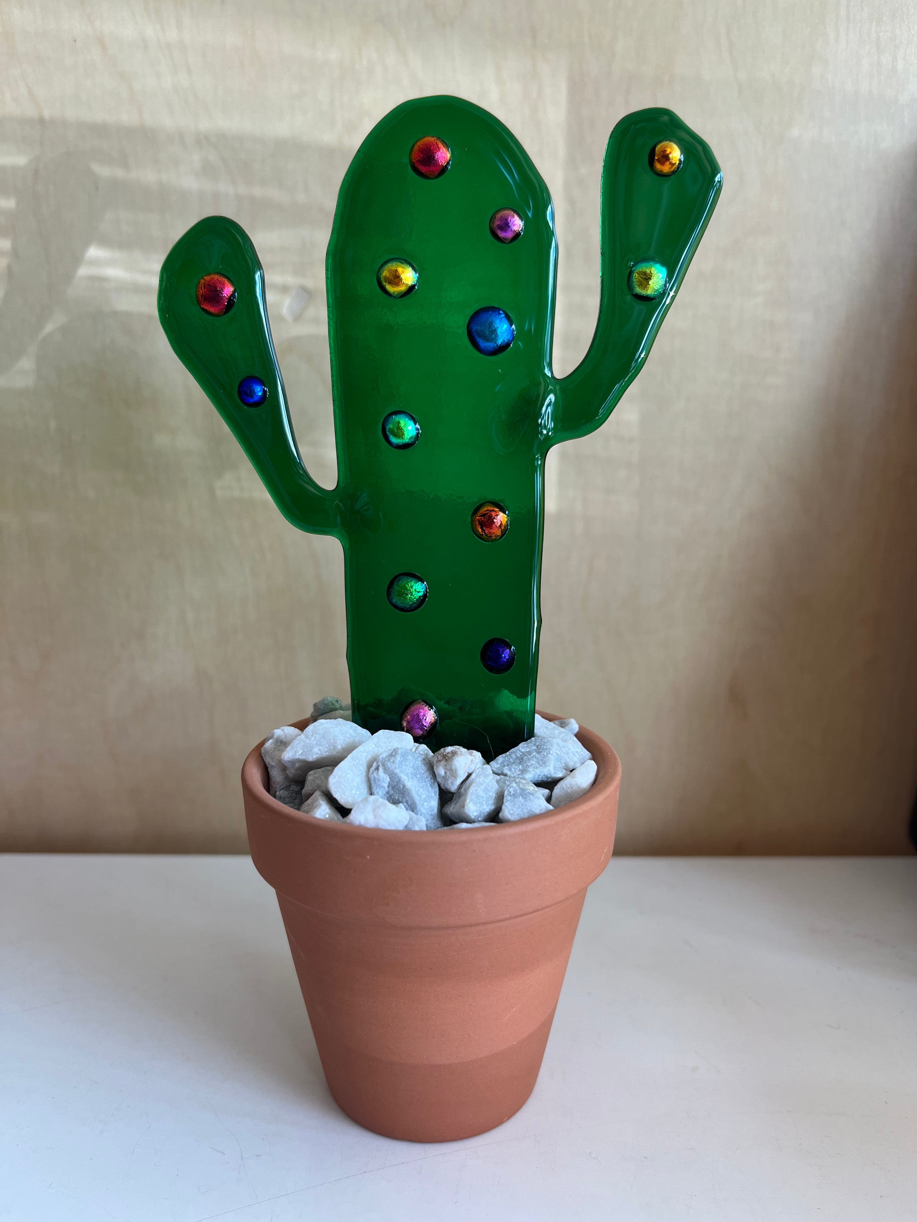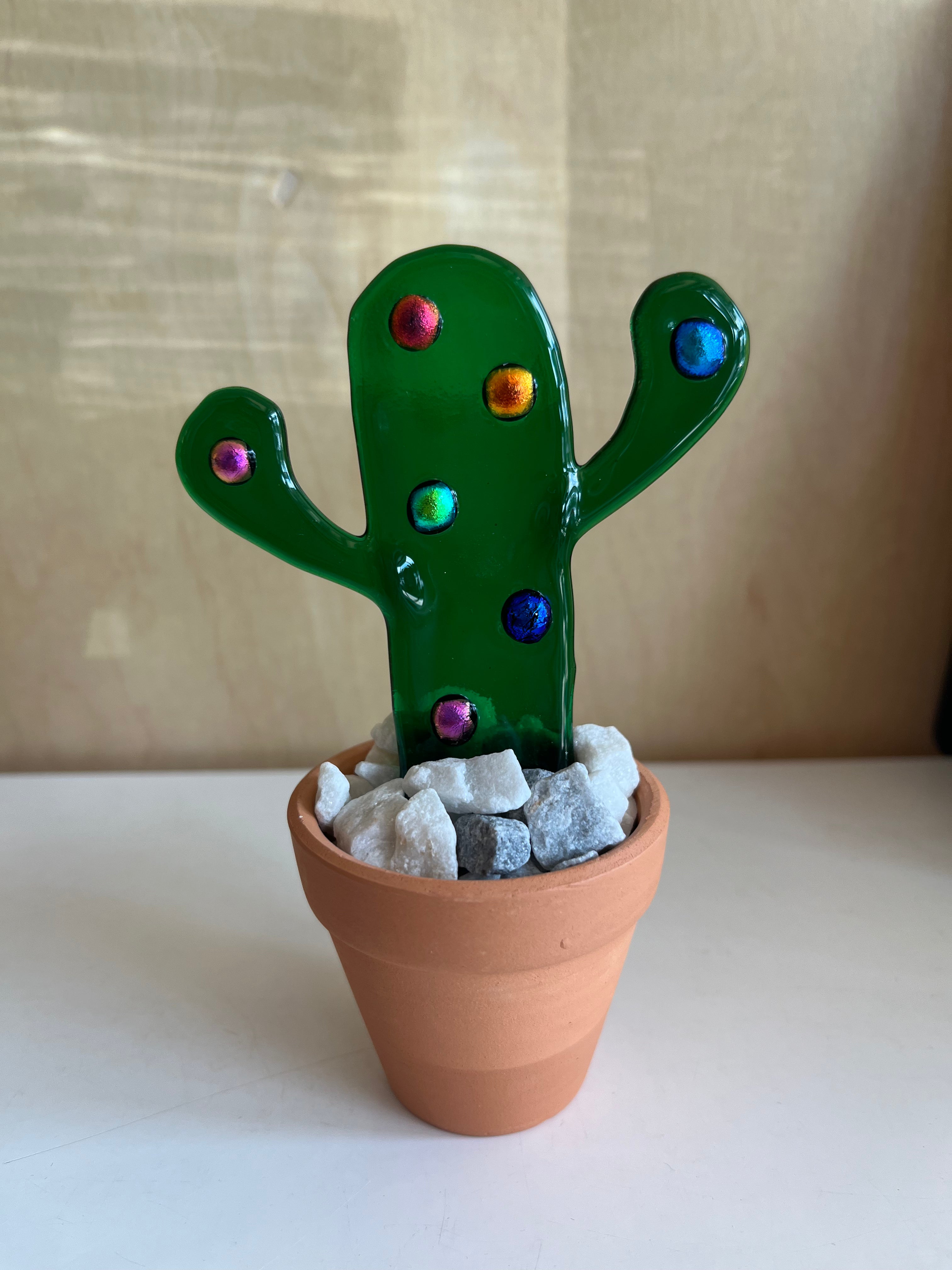 Each cactus is handmade using fused glass. Each item varies slightly.