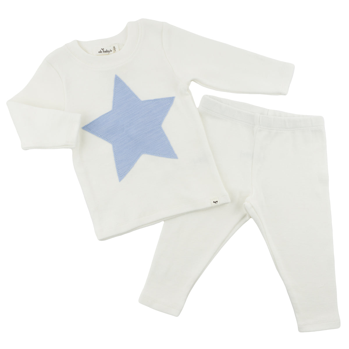 This cute baby boy outfit will have your little one looking stylish and feeling cozy in no time! Made with soft cotton, this two piece set features a star fog appliqué on a cream background. Available in infant sizes. Designed in Minnesota.