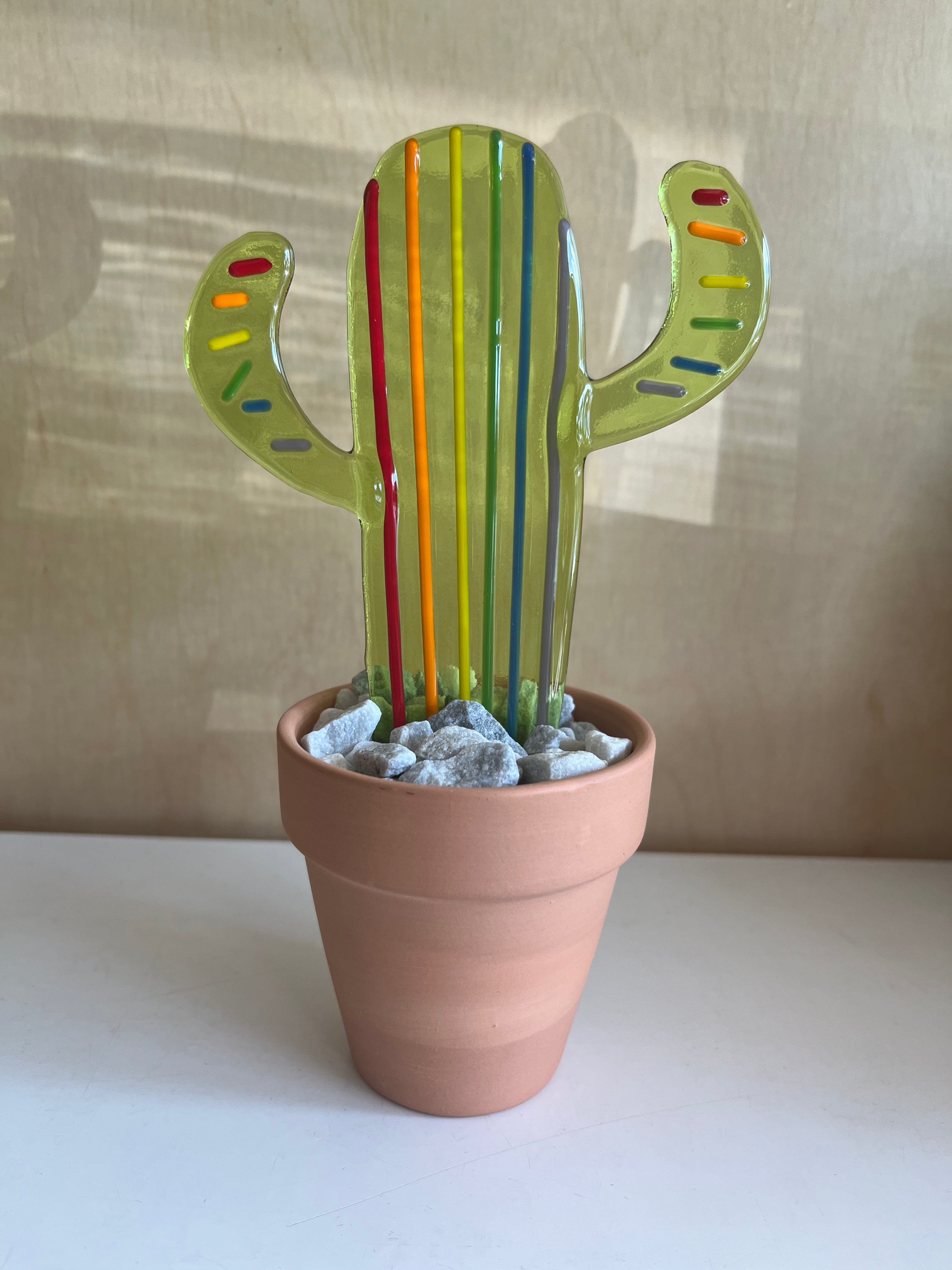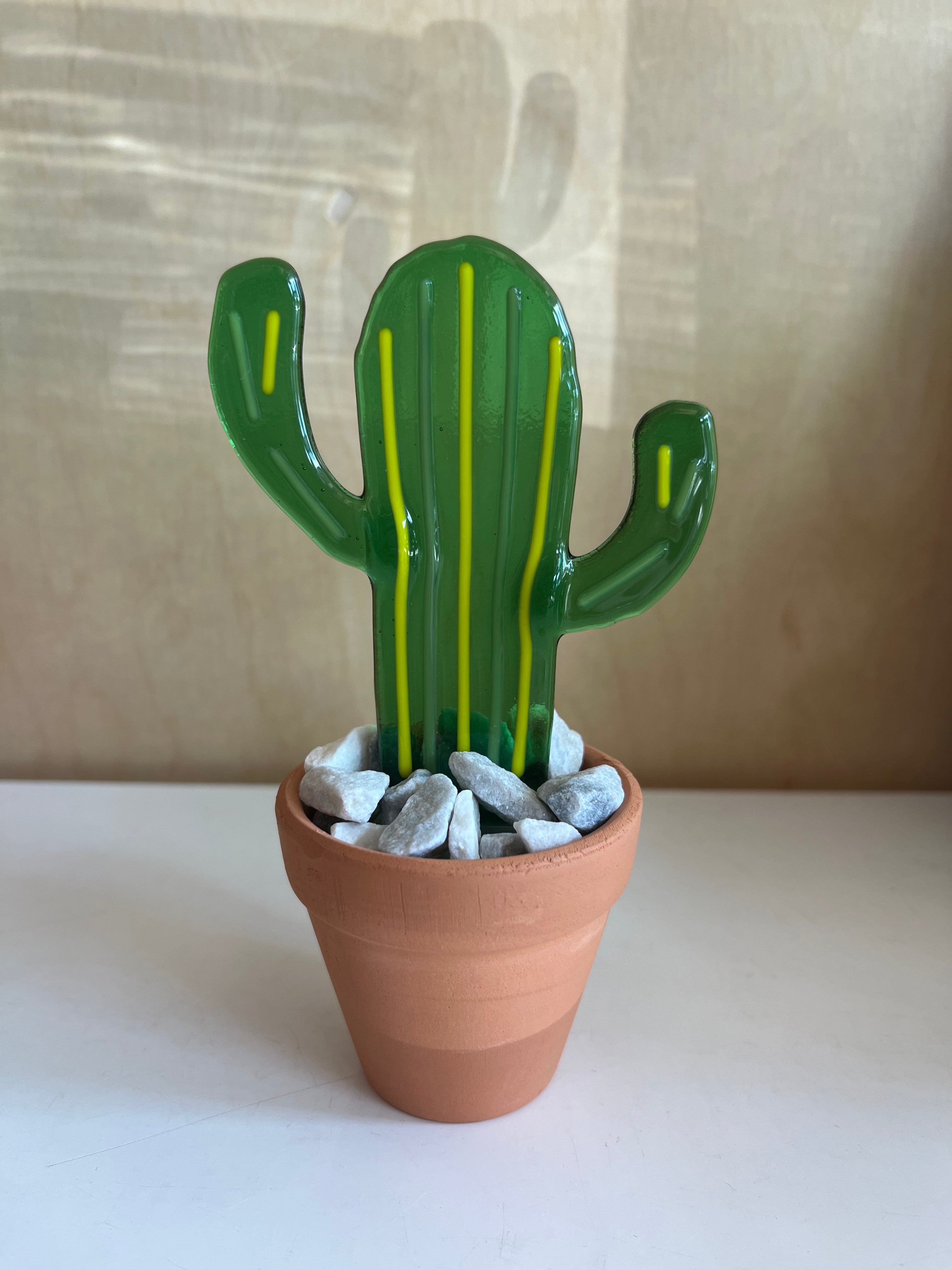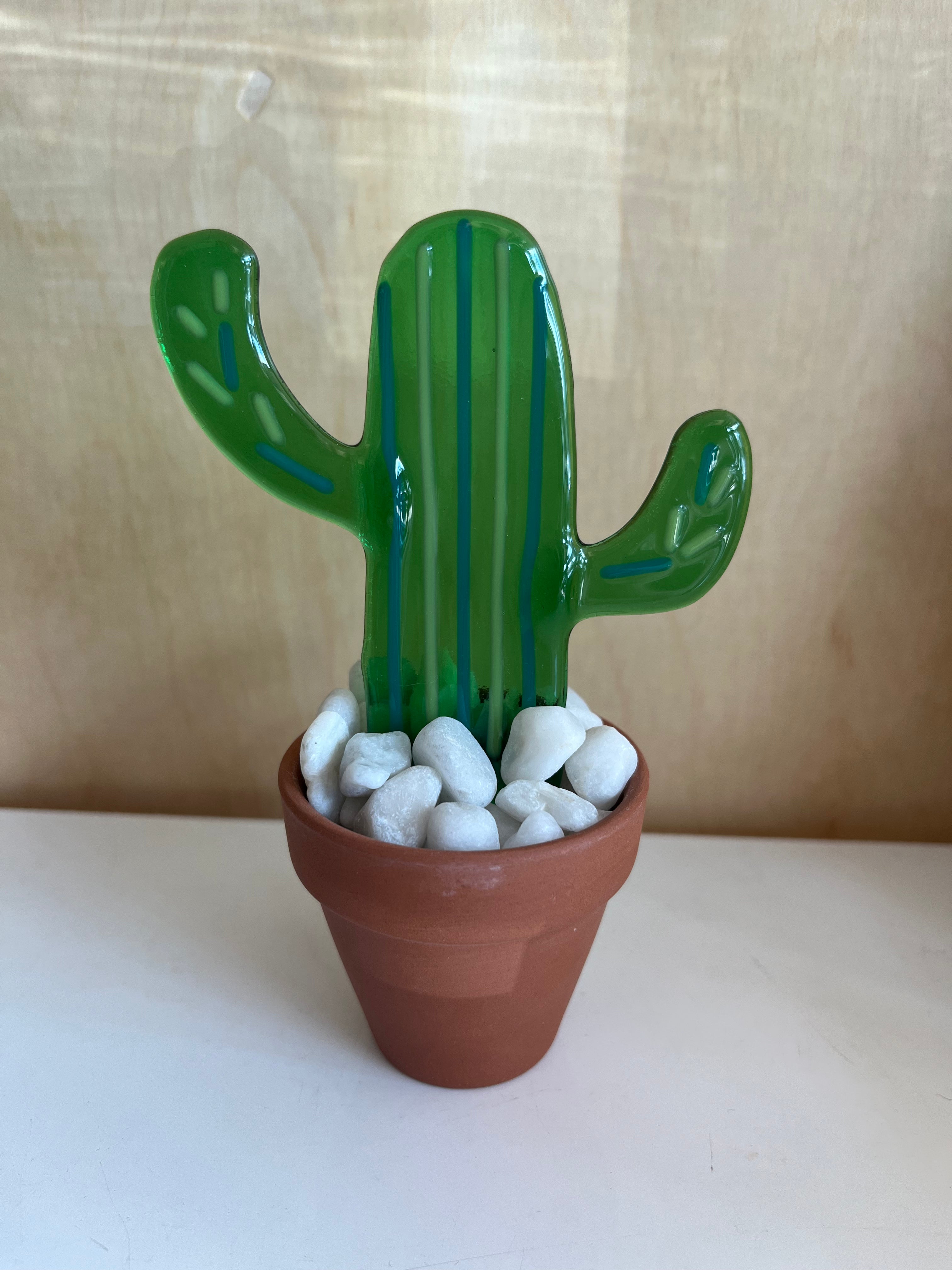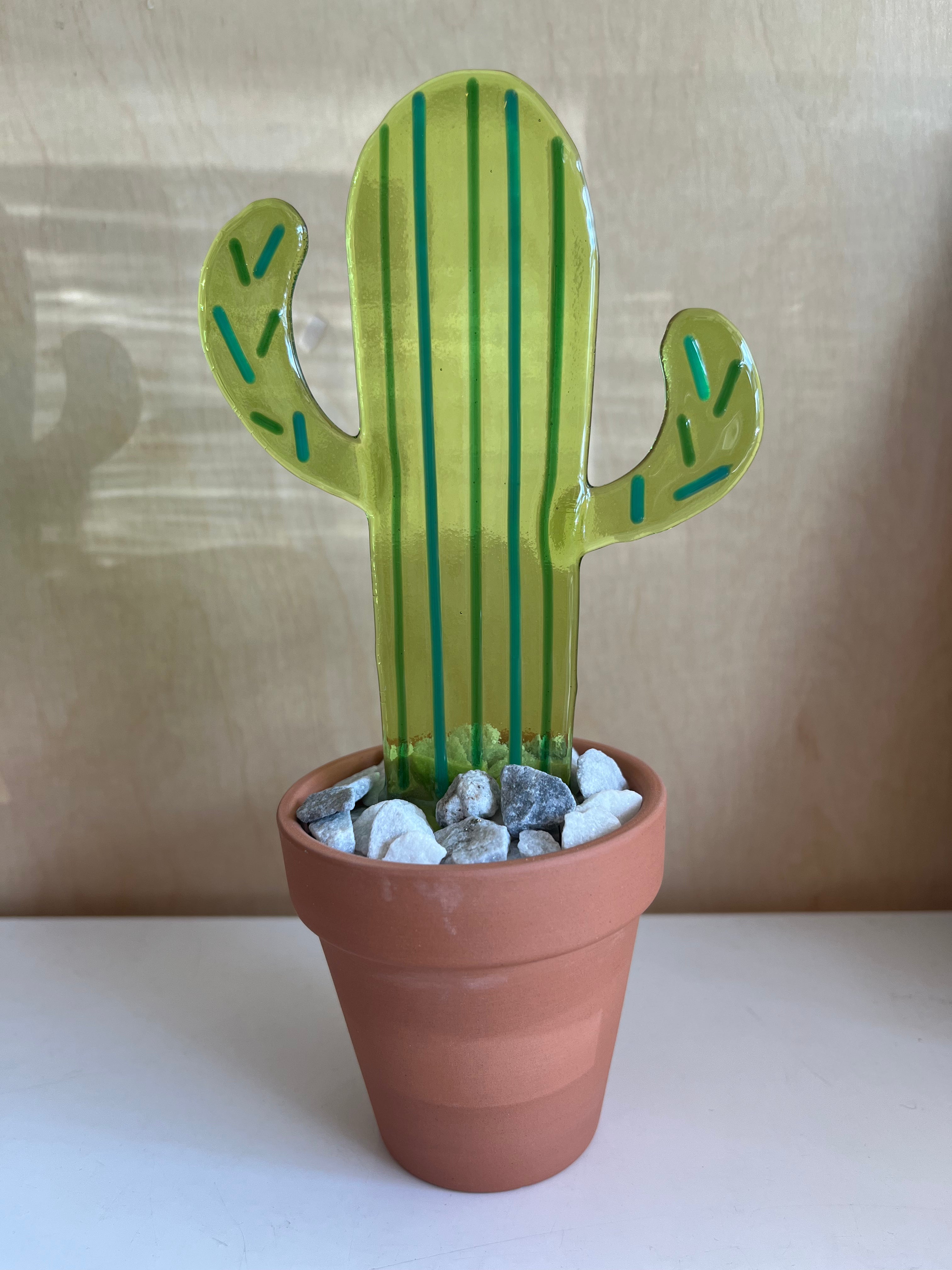 Each cactus is handmade using fused glass. Each item varies slightly.