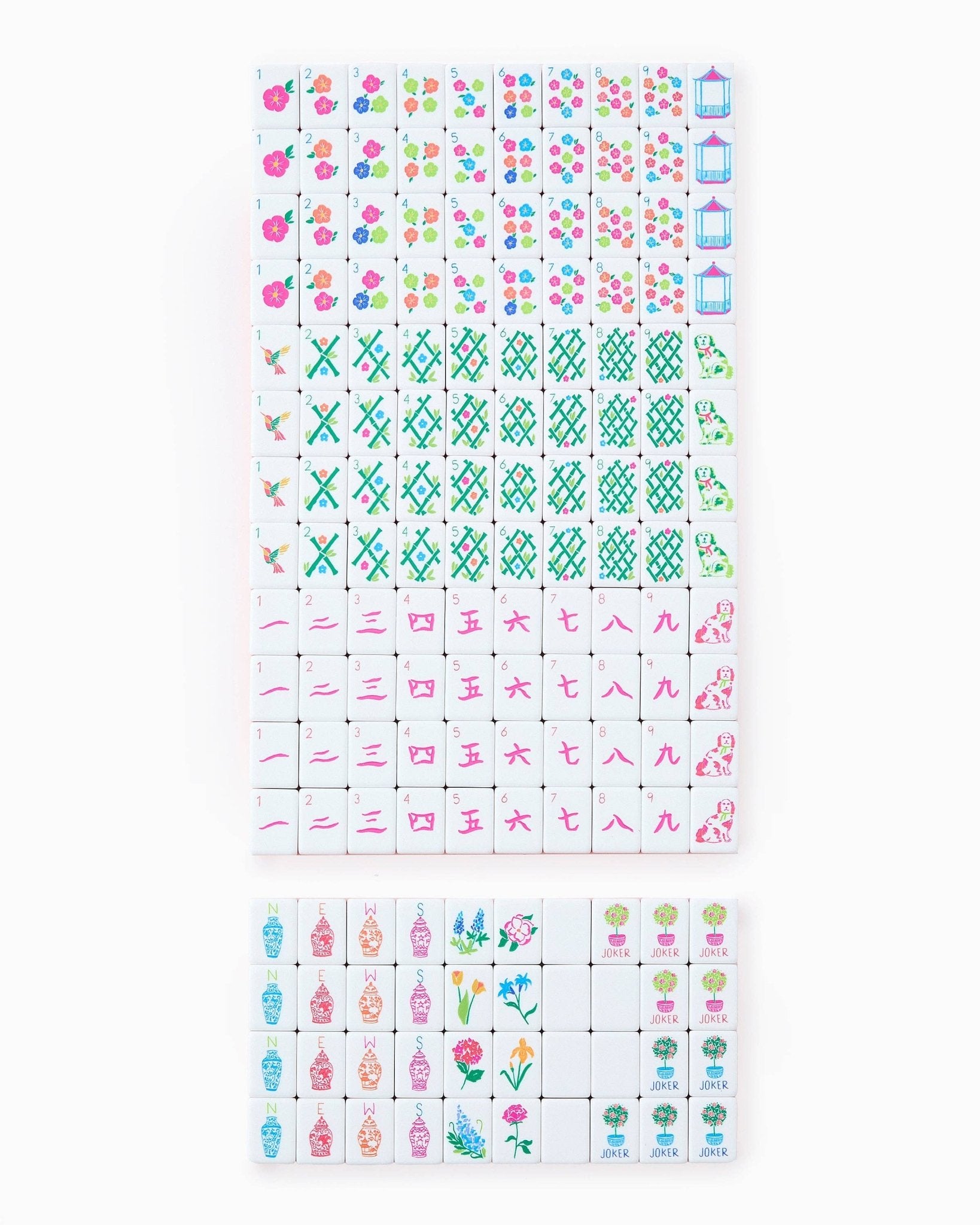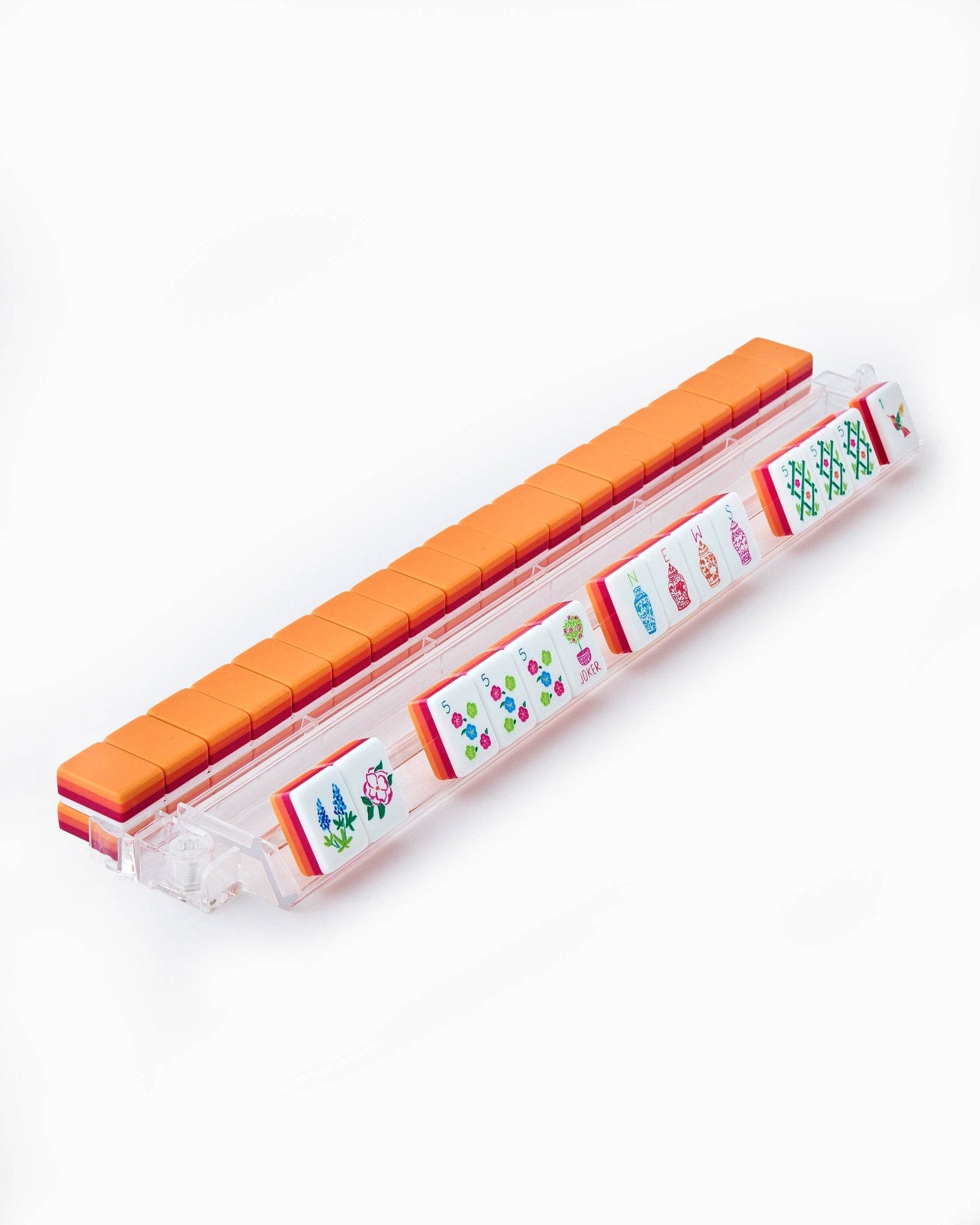 Capture the breathtaking beauty of a sunset with our stunning Sunset Tiles! Bursting with the warm, vibrant hues of coral, orange, and neon pink, these tiles are inspired by those magical moments when the sky is painted with the colors of dusk. Each tile in this set is designed to reflect the energy and glow of a perfect sunset, bringing a dynamic and playful vibe to your mahjong game. Whether you're playing under the stars or at a sun-soaked gathering, these tiles add a bold, radiant touch to every round. Tiles: - 160 Acrylic Tiles - 1-9 Bams, Cracks and Dots (4 of each) = 108 - N E W S (4 of each) = 16 - Red, Green and White Dragon (4 of each) = 12 - Flowers = 8 - Jokers = 10 - Blanks = 6 Individual Tiles Size: .87” Wide x .75” Deep x 1.25” Tall