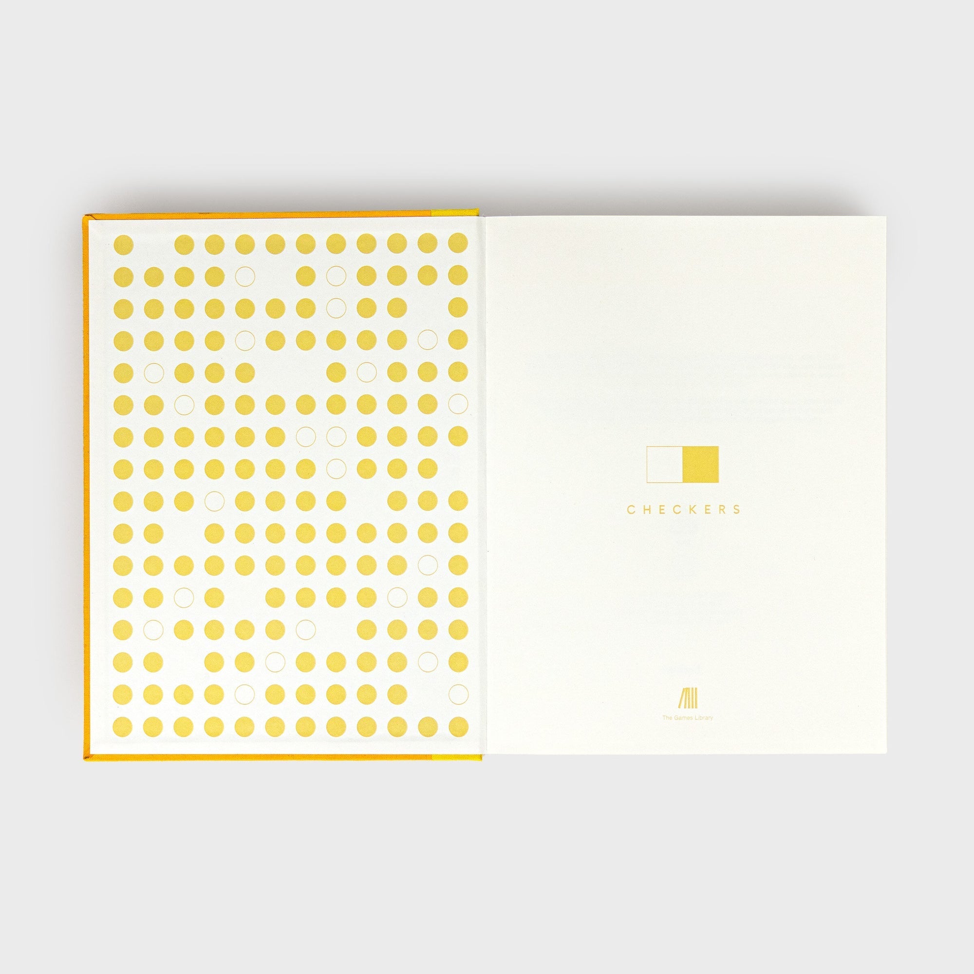 Open up this hardback, cloth-covered book and you'll find a board, and pieces neatly stashed within the pages. Checkers AKA Draughts is a classic for all ages that offers endless opportunities for friendly competition. When the game is over, display the set on your bookshelf or coffee table. Pages include rules of the game in four languages.