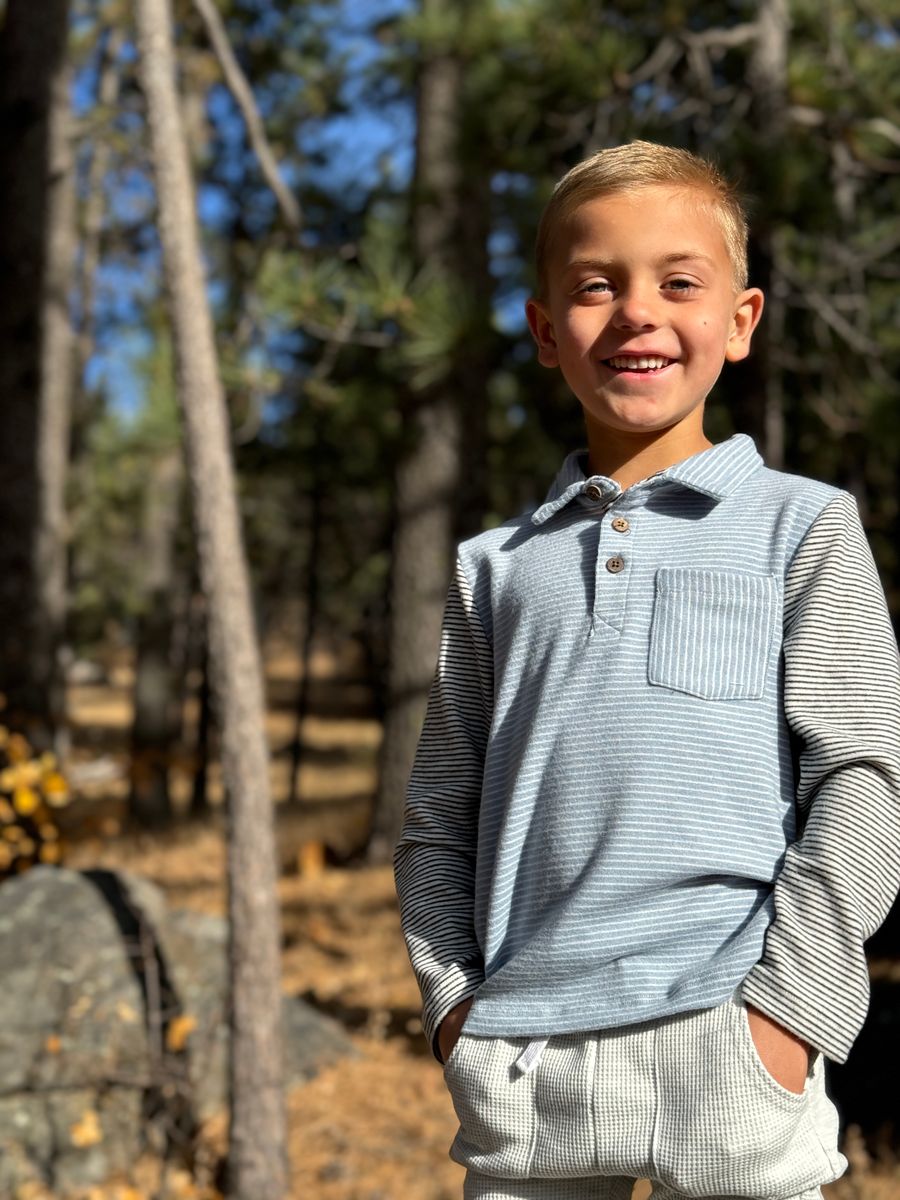 Don't blend in, stand out in this Blue/Cream Arms Stripe TROY Polo! This is our warmest , coziest fabric ever! This relaxed fit polo is sure to turn heads with its unique color combination and stylish stripes. Show off your fashion sense and take your look to the next level!